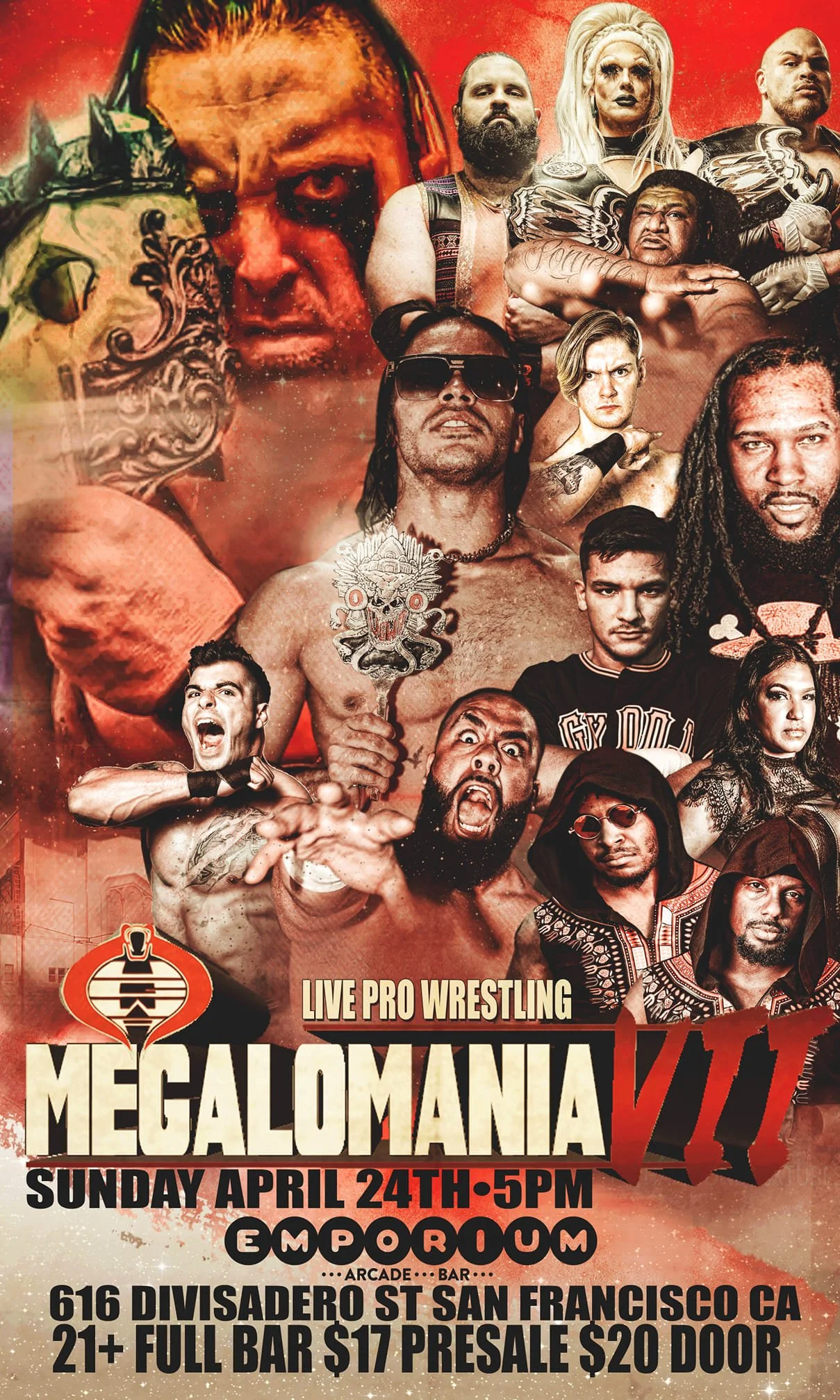 UGWA presents Megalomania VII Sunday, April 24, 2022 5:00 PM 8:00 PM 17:00 20:00 Google Calendar ICS **This show is for fans 21 & over**Location: 616 Divisadero Street San Francisco, CA 94117Tickets: EventbriteFacebook Event PageUGWA Facebook PageUGWA InstagramUGWA TwitterUGWA YouTube