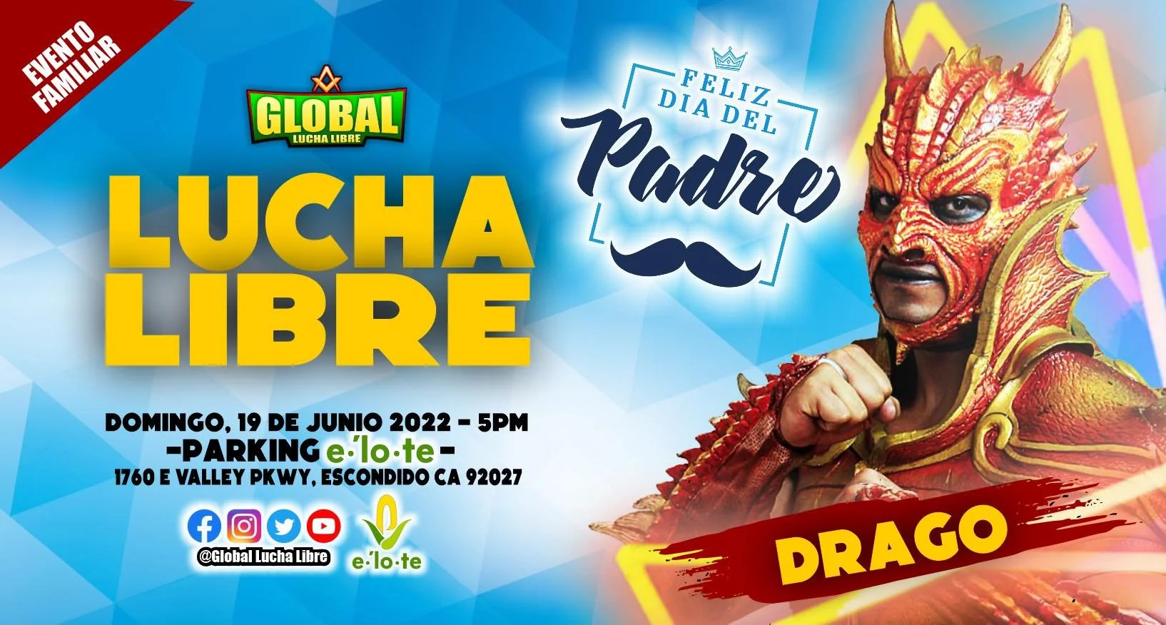 Global Lucha Libre Sunday, June 19, 2022 5:00 PM 7:00 PM 17:00 19:00 Google Calendar ICS Location: 1760 E Valley PWKY Escondido, CA 92027Tickets Available at the DoorGlobal Lucha Libre FacebookGlobal Lucha Libre Instagram