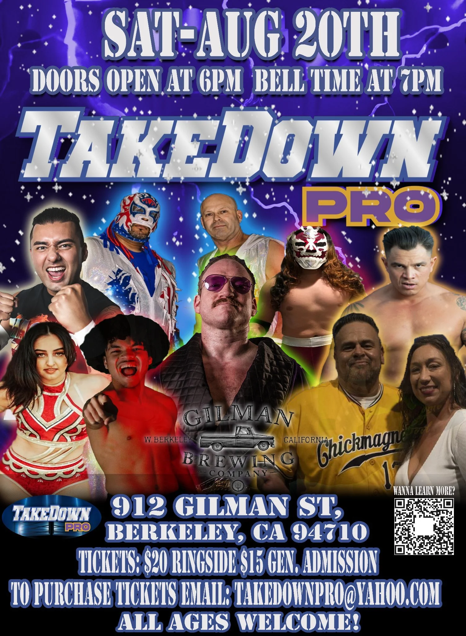 TakeDown Pro Saturday, August 20, 2022 7:00 PM 9:00 PM 19:00 21:00 Google Calendar ICS Location: 912 Gilman St Berkeley, CA 94710Tickets: Email TakDownPro@yahoo.comTakeDown Pro FacebookTakeDown Pro InstagramTakeDown Pro TwitterTakeDown Pro YouTube