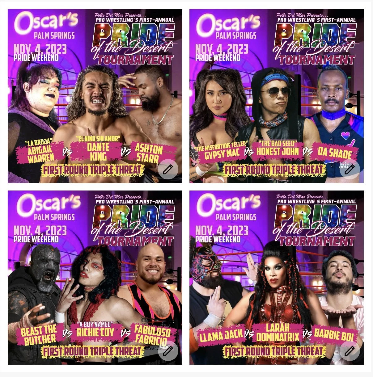 Pride of the Desert Wrestling Tournament Saturday, November 4, 2023 2:00 PM 5:00 PM 14:00 17:00 Google Calendar ICS Location: 125 E Tahquitz Canyon Way, Palm Springs, CA 92262Tickets: oscarspalmsprings.com