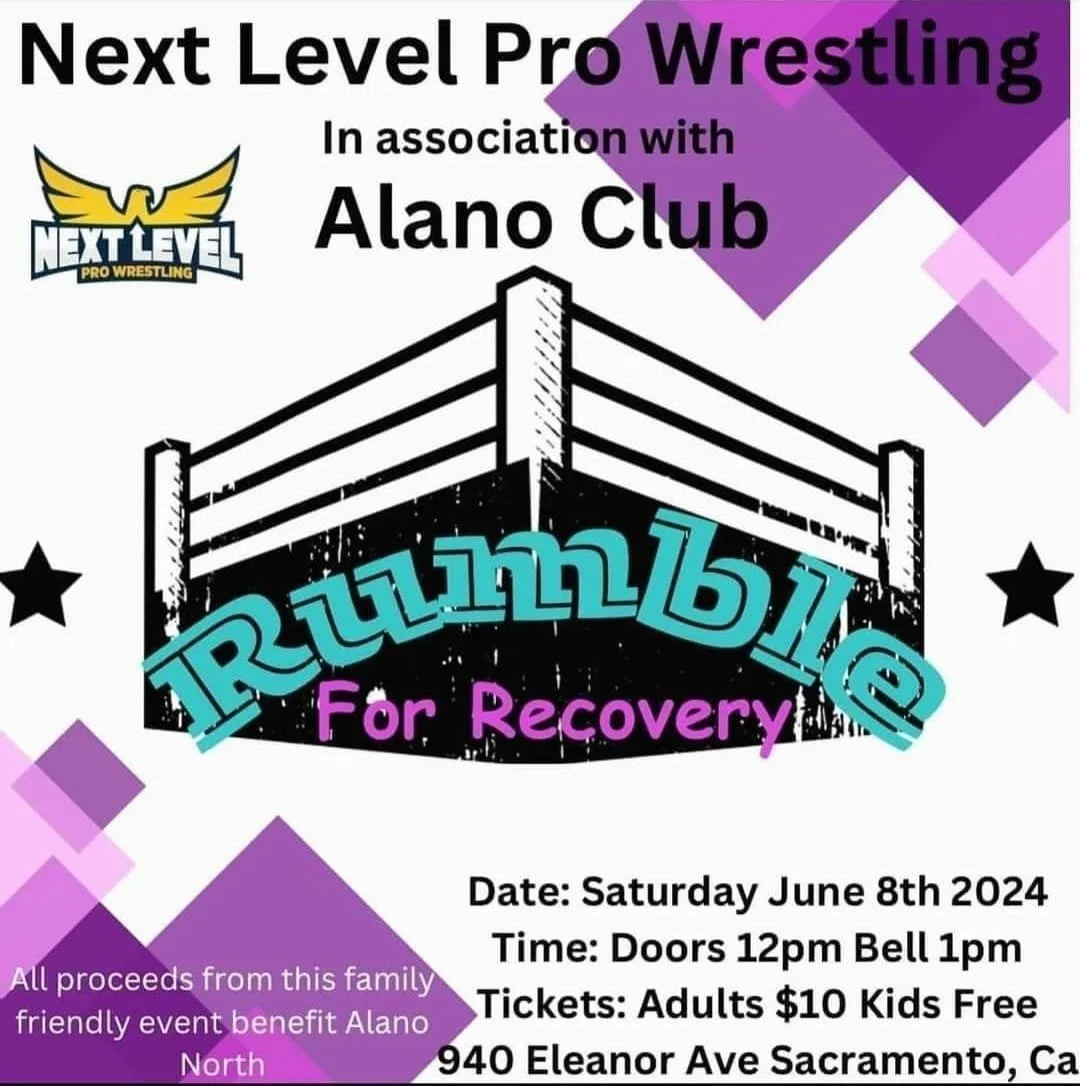 Next Level Pro Wrestling presents Rumble for Recovery Saturday, June 8, 2024 1:00 PM 3:00 PM 13:00 15:00 Google Calendar ICS Location: 940 Eleanor Ave, Sacramento, CA 95815Tickets Available at the DoorNext Level Pro Wrestling Facebook PageNext Level Pro Wrestling InstagramNext Level Pro Wrestling Twitter