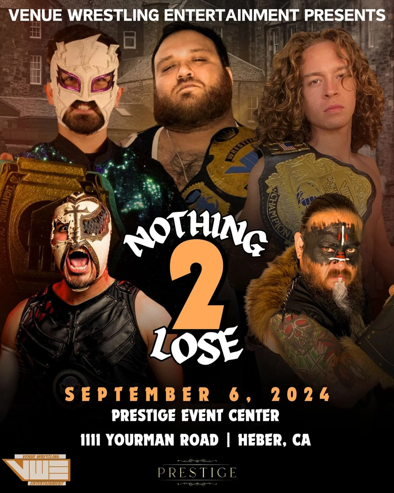 Venue Wrestling Entertainment presents Nothing 2 Lose Friday, September 6, 2024 7:00 PM 10:00 PM 19:00 22:00 Google Calendar ICS Location: 1111 Yourman Rd, Heber, CA 92249Tickets Available at the DoorVenue Wrestling Entertainment FacebookVenue Wrestling Entertainment YouTubeVenue Wrestling Entertainment Website