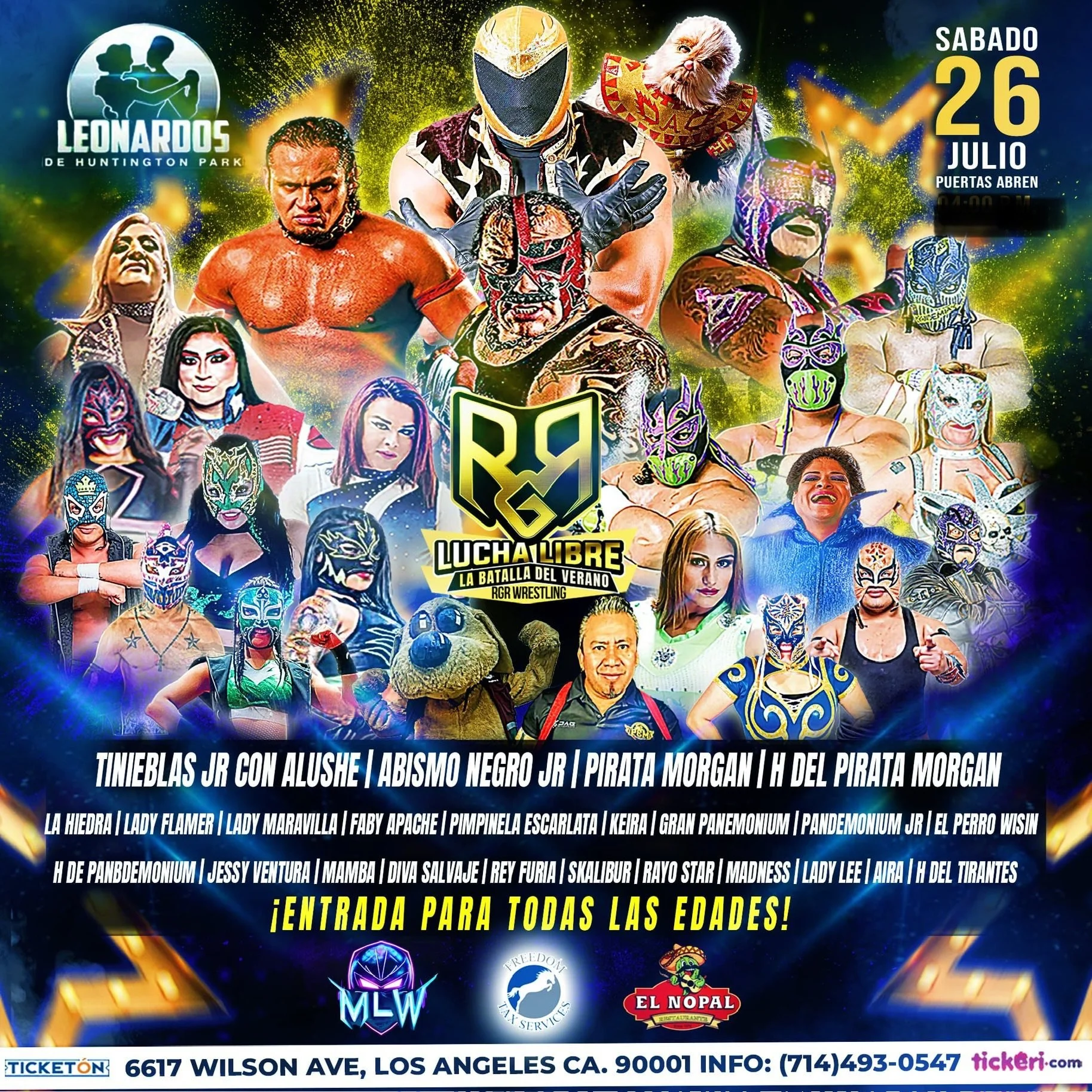RGR Lucha Libre Saturday, July 26, 2025 3:00 PM 6:00 PM 15:00 18:00 Google Calendar ICS Location: 6617 Wilson Ave, Los Angeles, CA 90001Tickets: TickeriRGR Lucha Libre FacebookRGR Lucha Libre InstagramRGR Lucha Libre YouTube