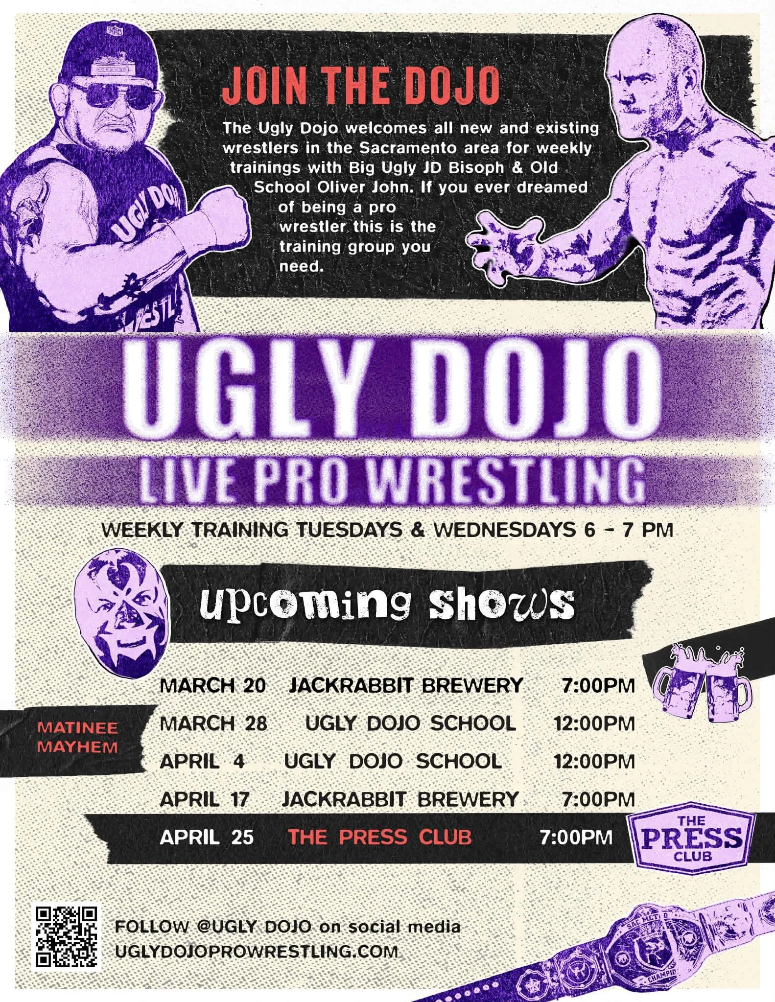 Ugly Dojo Saturday, March 28, 2026 12:00 PM 2:00 PM 12:00 14:00 Google Calendar ICS Location: 6753 Fair Oaks Blvd, Carmichael, CA 95608 (parking on North Ave)Tickets Available at the DoorUgly Dojo YouTubeUgly Dojo Website